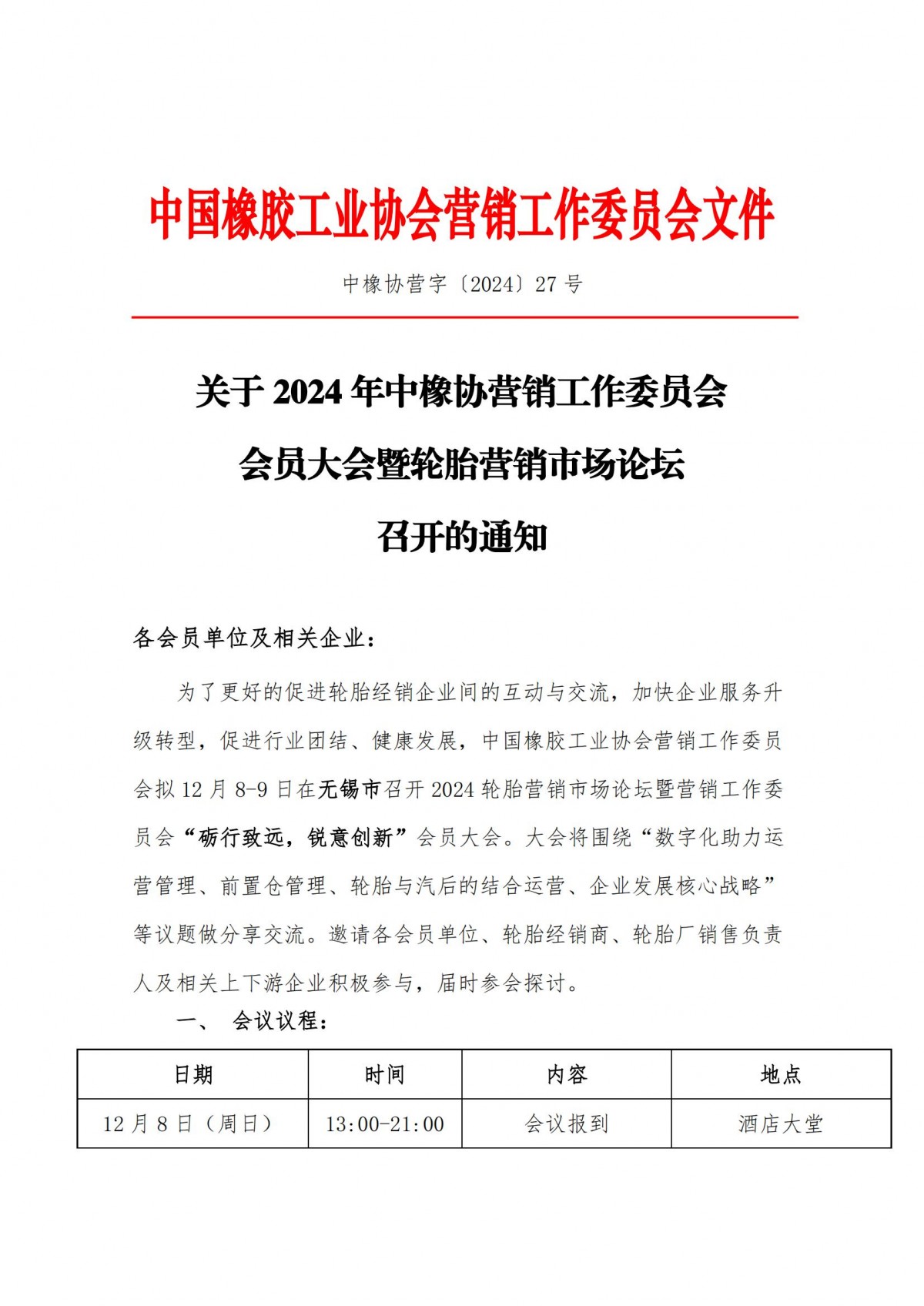 2024年中橡协营销委会员大会暨轮胎营销市场论坛