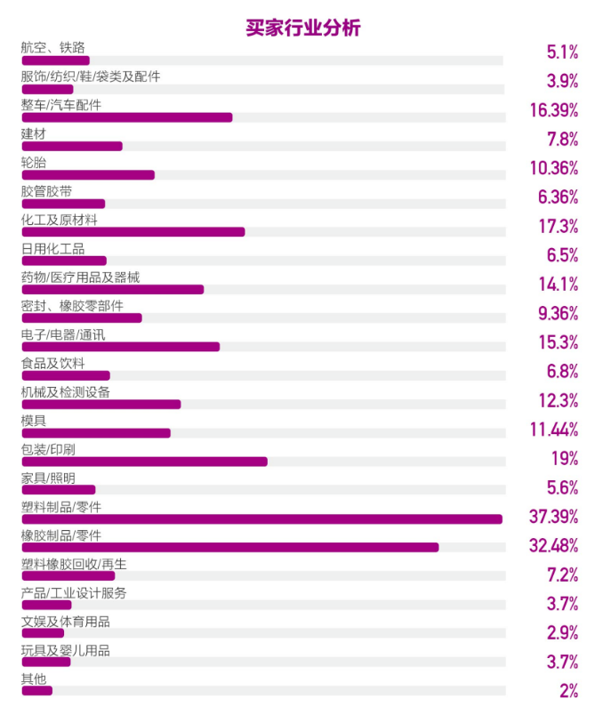 重点瞄准“电子电器、医疗医药、建筑建材、循环再生、包装橡塑制品、化工及原材料、新能源、食品饮料、日化用品、汽车及零部件、轮胎、胶管胶带、输送带、密封、乳胶制品、轨道交通、电线电缆”等应用战略性产业,邀约实力买家团。