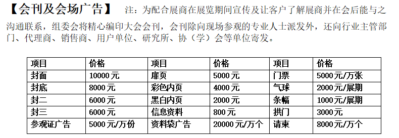 【展位费用】