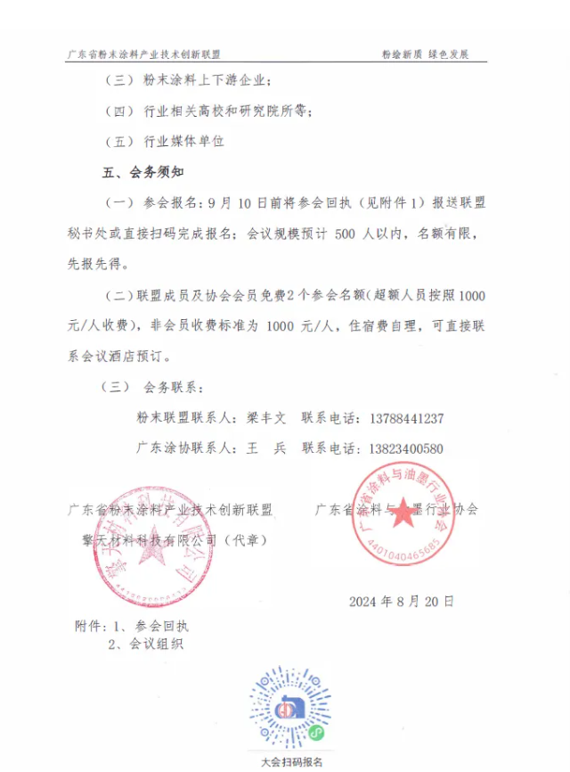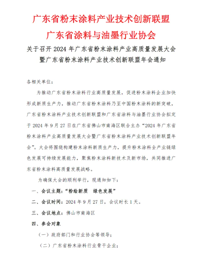 2024 年广东省粉末涂料产业高质量发展大会暨广东省粉末涂料产业技术创新联盟年会