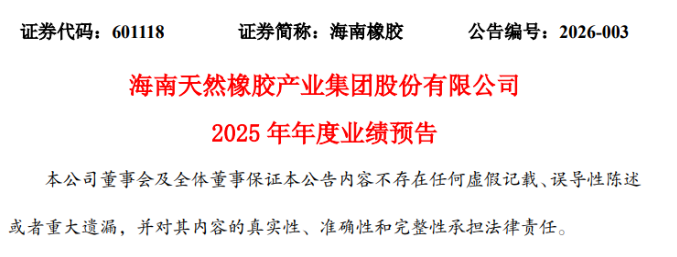 【炭黑产业网】1月31日消息,1月30日,海南天然橡胶产业集团股份有限公司对外披露了2025年年度业绩预告相关情况。