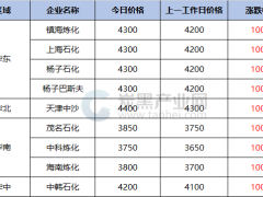 3月24日,安徽临涣焦化股份有限公司高温煤焦油拍卖数量1000吨,起拍价格4200元/吨(出厂现汇、含税),最终成交4300元/吨,较上周下调60元/吨。